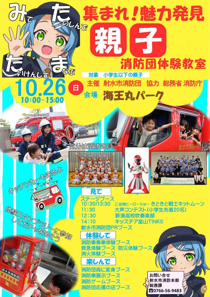 10/26(日)に海王丸パーク内で、「集まれ!魅力発見親子消防団体験教室」が開催されます。